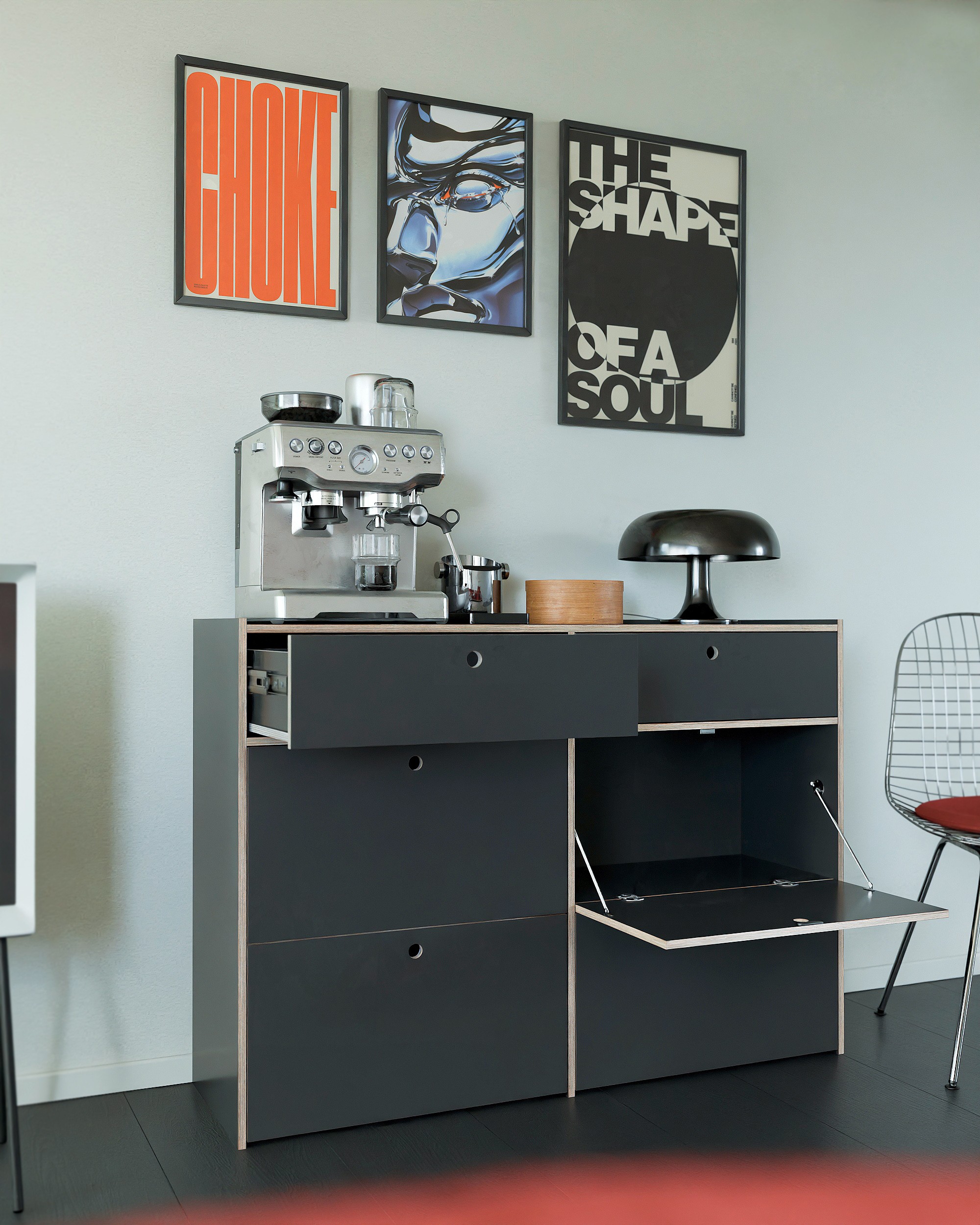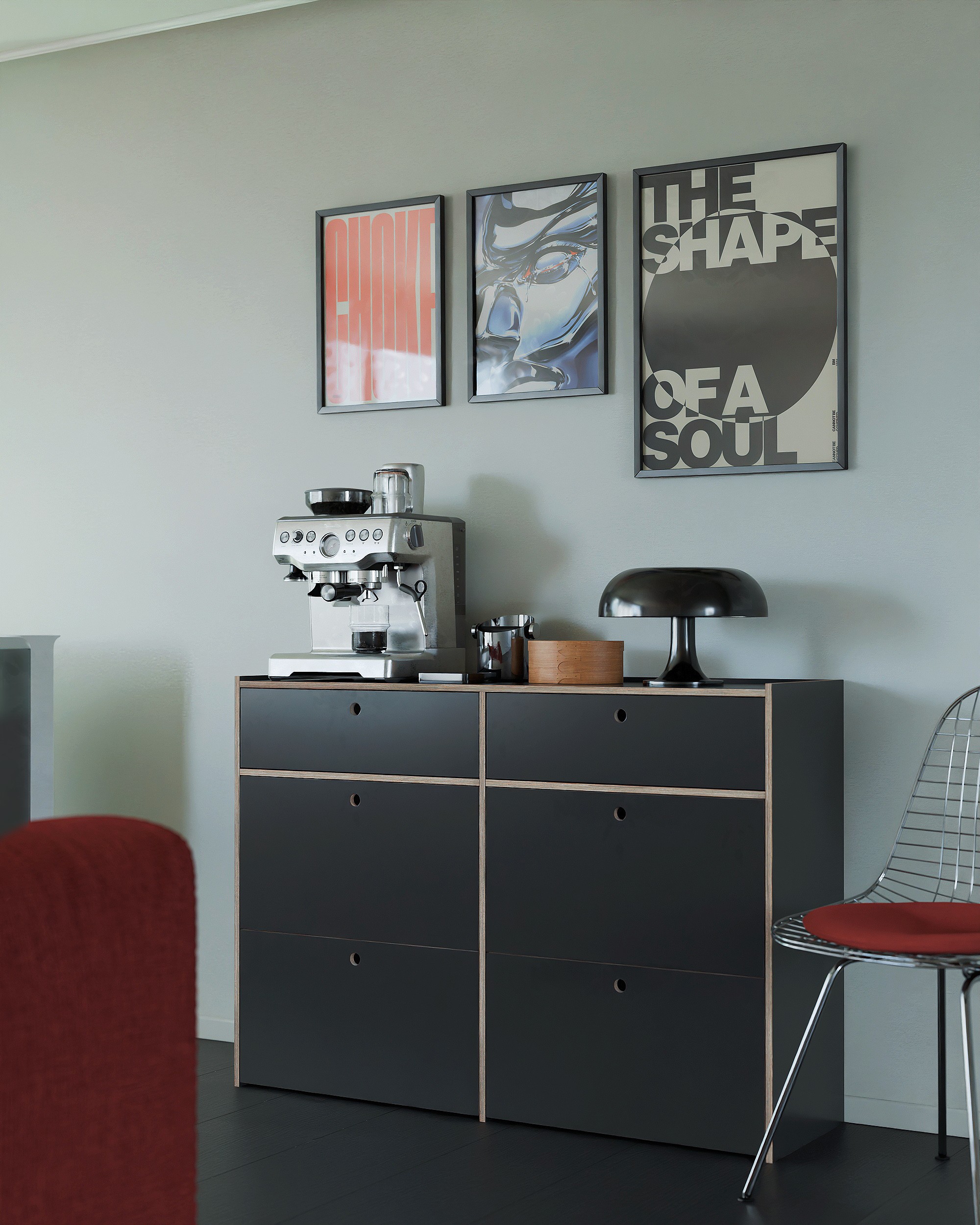 홈카페를 위한 수납장으로 많이 제작되는 CBN-1 디자인에서 상단부 낮은 기본 칸을 서랍으로 변경해 또 다른 실용성이 추가 된 디자인입니다. 상단 낮은 서랍은 관련 악세사리나 도구들을 수납하기 좋고 하단부 드롭다운 도어는 부피가 크거나 관련 잡동사니들을 수납하기 좋습니다. 두가지 수납 방식으로 홈카페 뿐만아니라 다양한 공간에서 생활용품들을 깔끔하게 수납하기위한 용도로 활용 할 수 있는 다기능 수납장입니다. CBN-1 / CBN-3 와 동일한 사이즈이며 수납방식만 달라 취향에 맞춰 선택 할 수 있습니다. 또한 맞춤 제작 서비스를 통해 컬러 및 사이즈, 칸 구성을 변경하여 제작 할 수 있습니다.