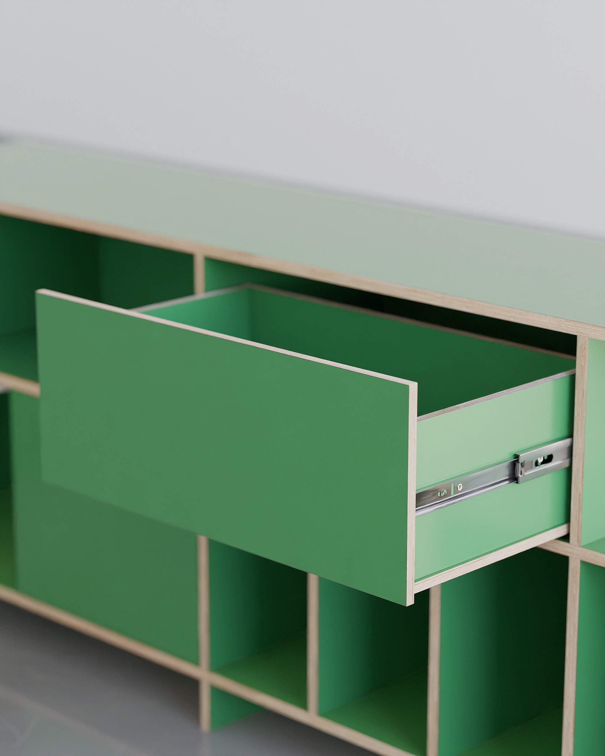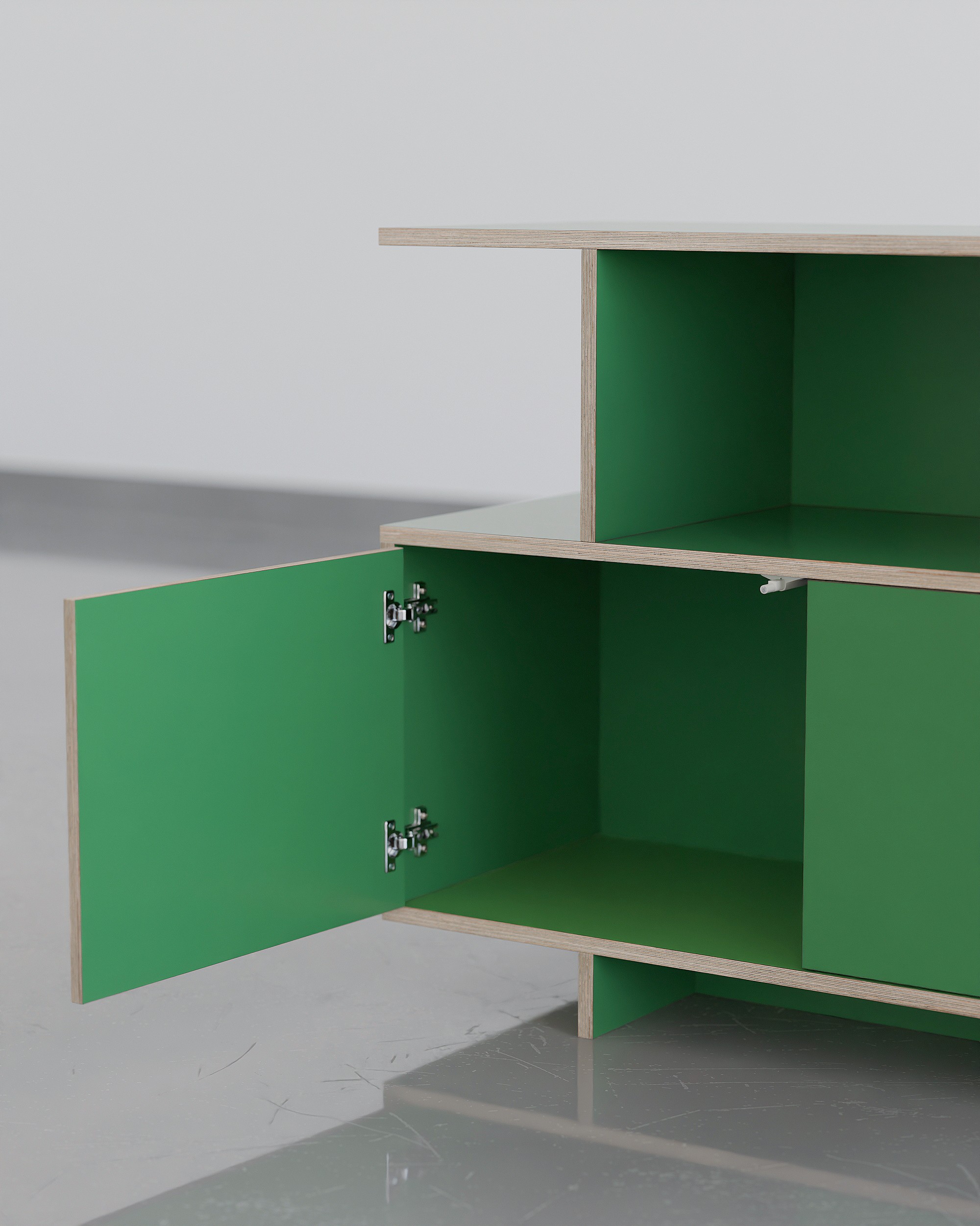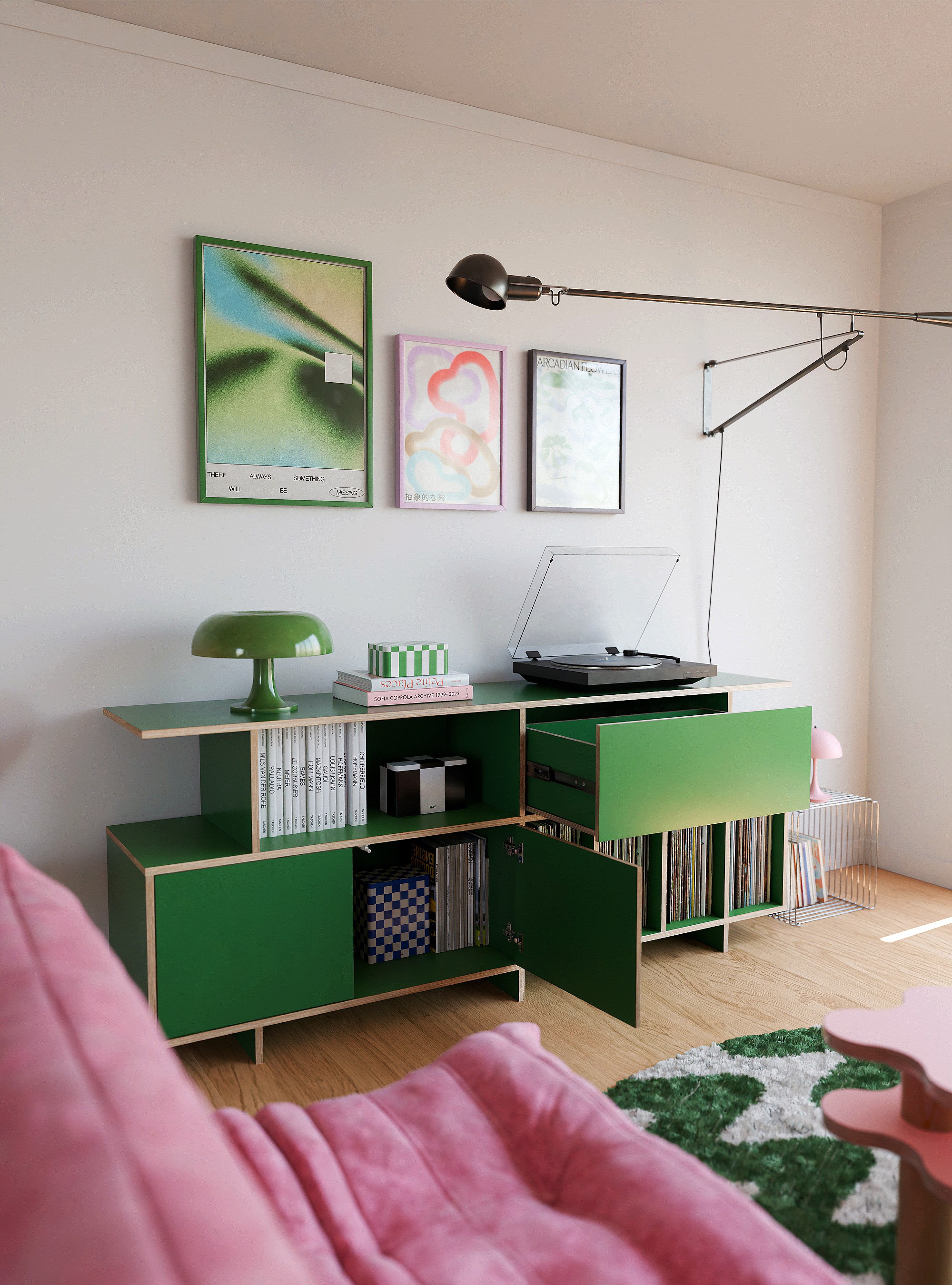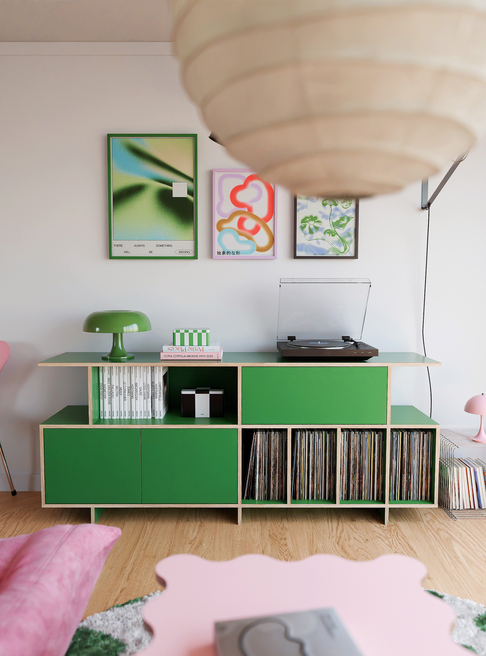 공간의 포인트, 무게감 있는 디자인으로 공간에 중심을 잡아줄 수 있는 사이드보드 타입의 거실장입니다. 수납 옵션으로는 상단부 우측엔 서랍장, 하단 좌측엔 2도어의 여닫이도어가 설치 되어 깔끔한 숨김 수납을 충분히 할 수 있고 내경 370mm 깊이의 책장칸은 LP까지 넉넉하게 수납 가능합니다. 상단부 좌측의 오픈형 칸은 260mm 높이로 (상담을 통해) 케이블 홀 타공을 추가하여 CD 플레이어, 오디오 등을 수납 할 수 있으며 제품의 상판은 가로 1800mm의 넓이와 400mm의 사이즈의 통판으로 중간에 끊어짐 없이 넓고 쾌적하게 사용 가능합니다. 제품은 맞춤 제작 서비스를 통해 공간에 맞는 컬러, 사이즈, 칸 구성을 변경 할 수 있습니다.