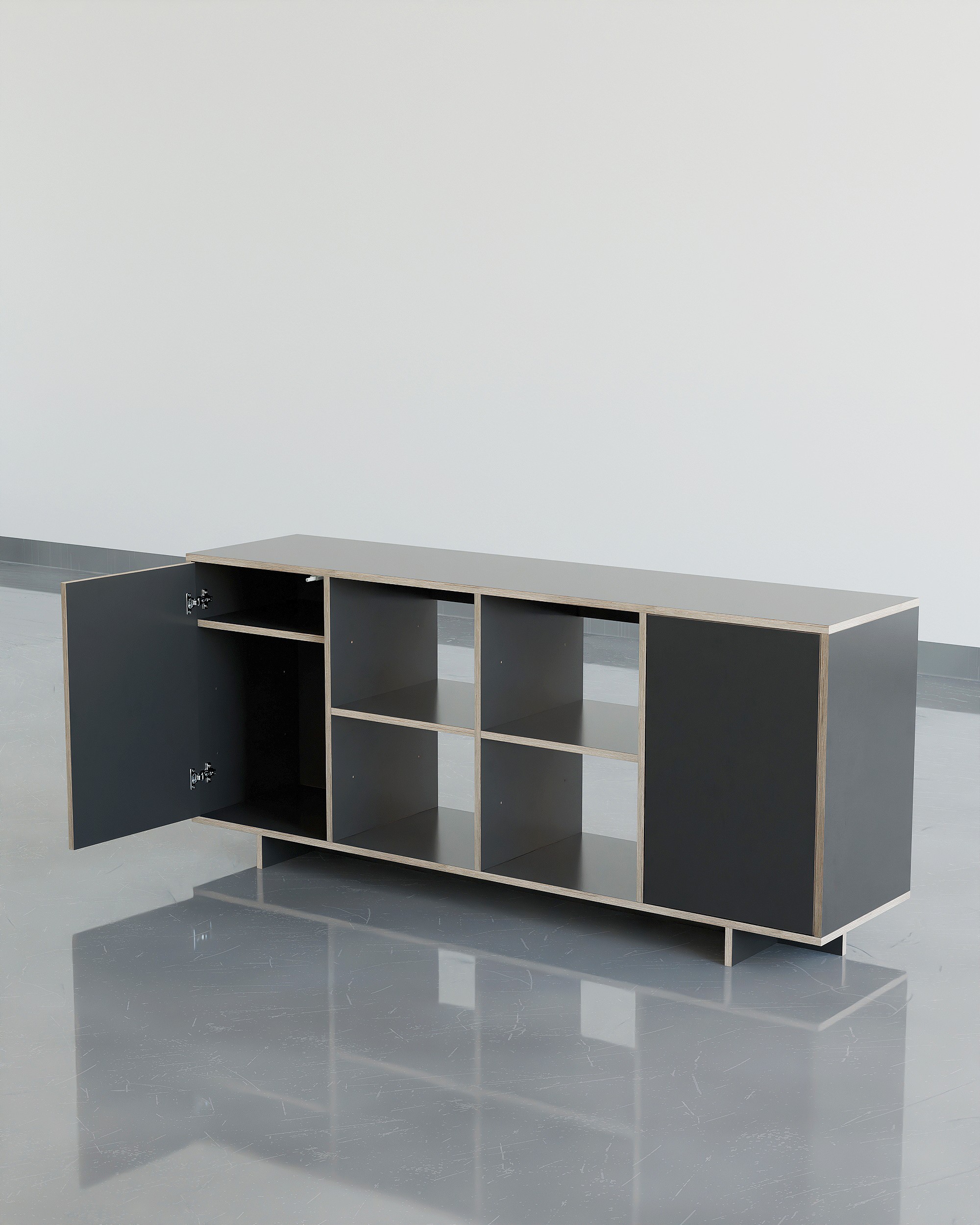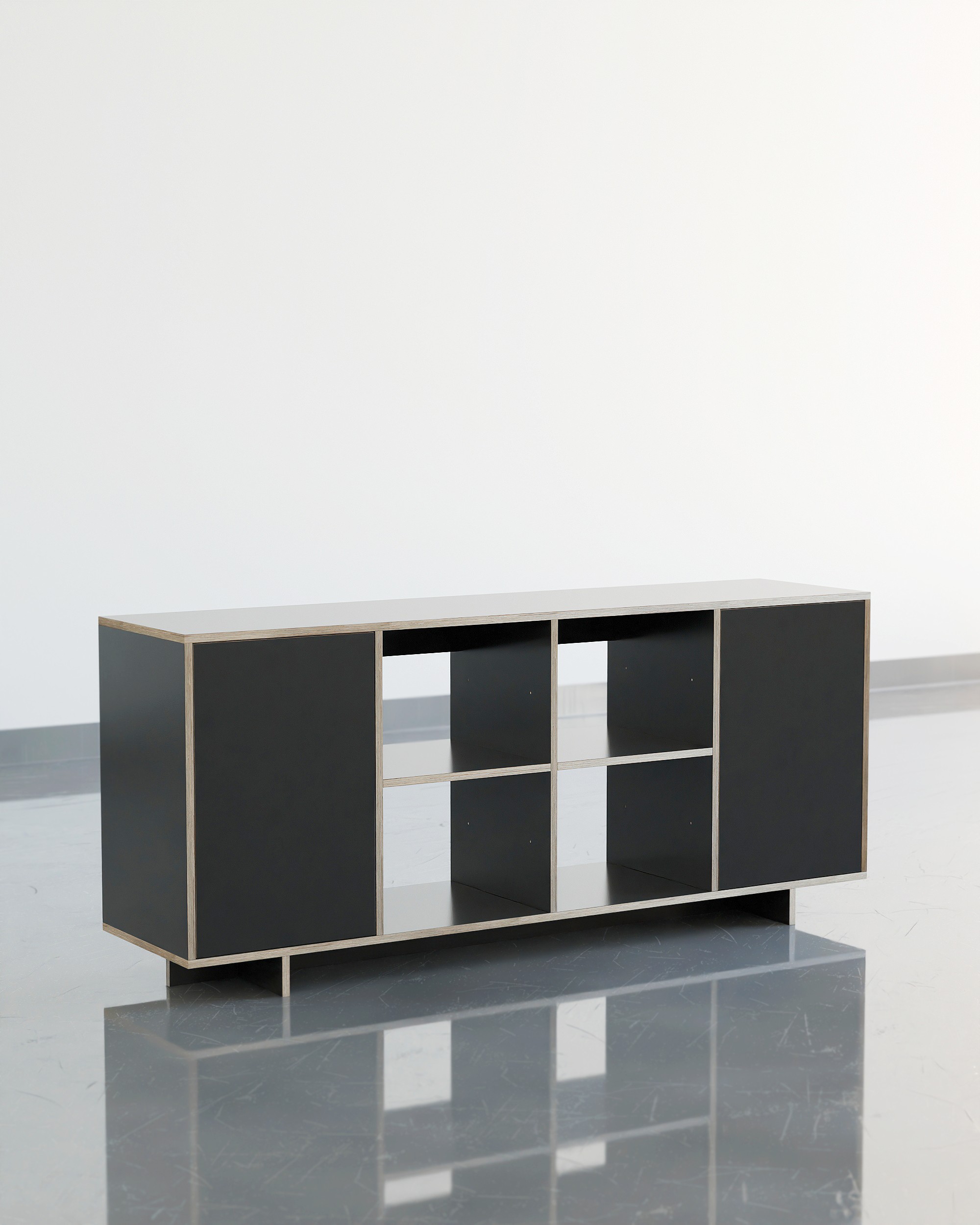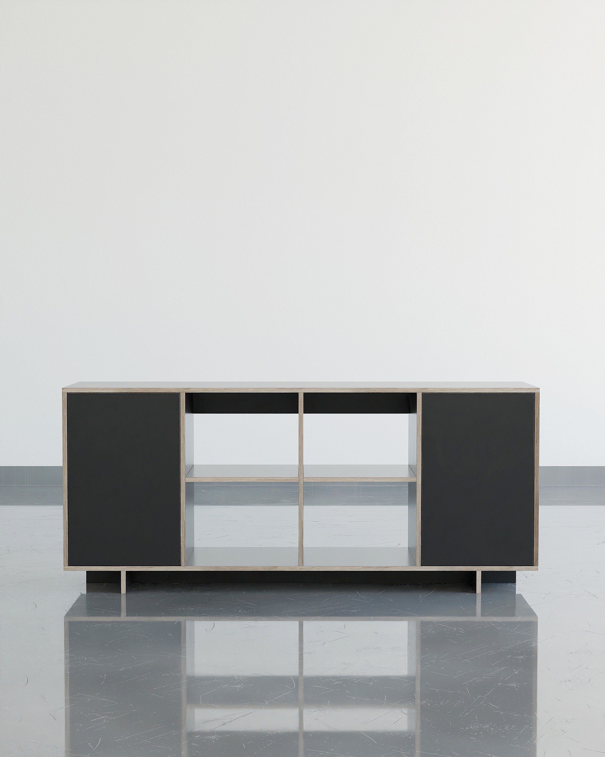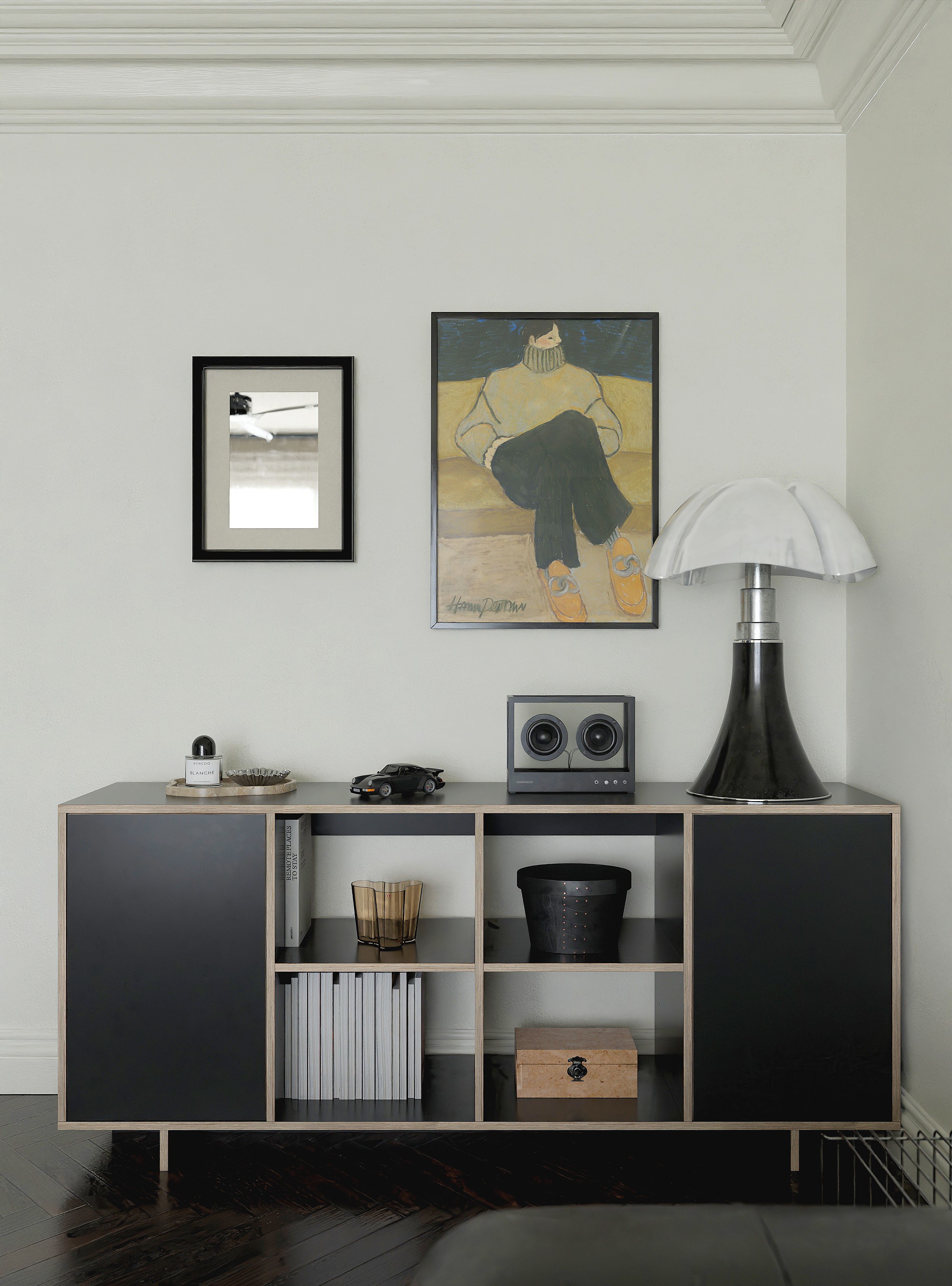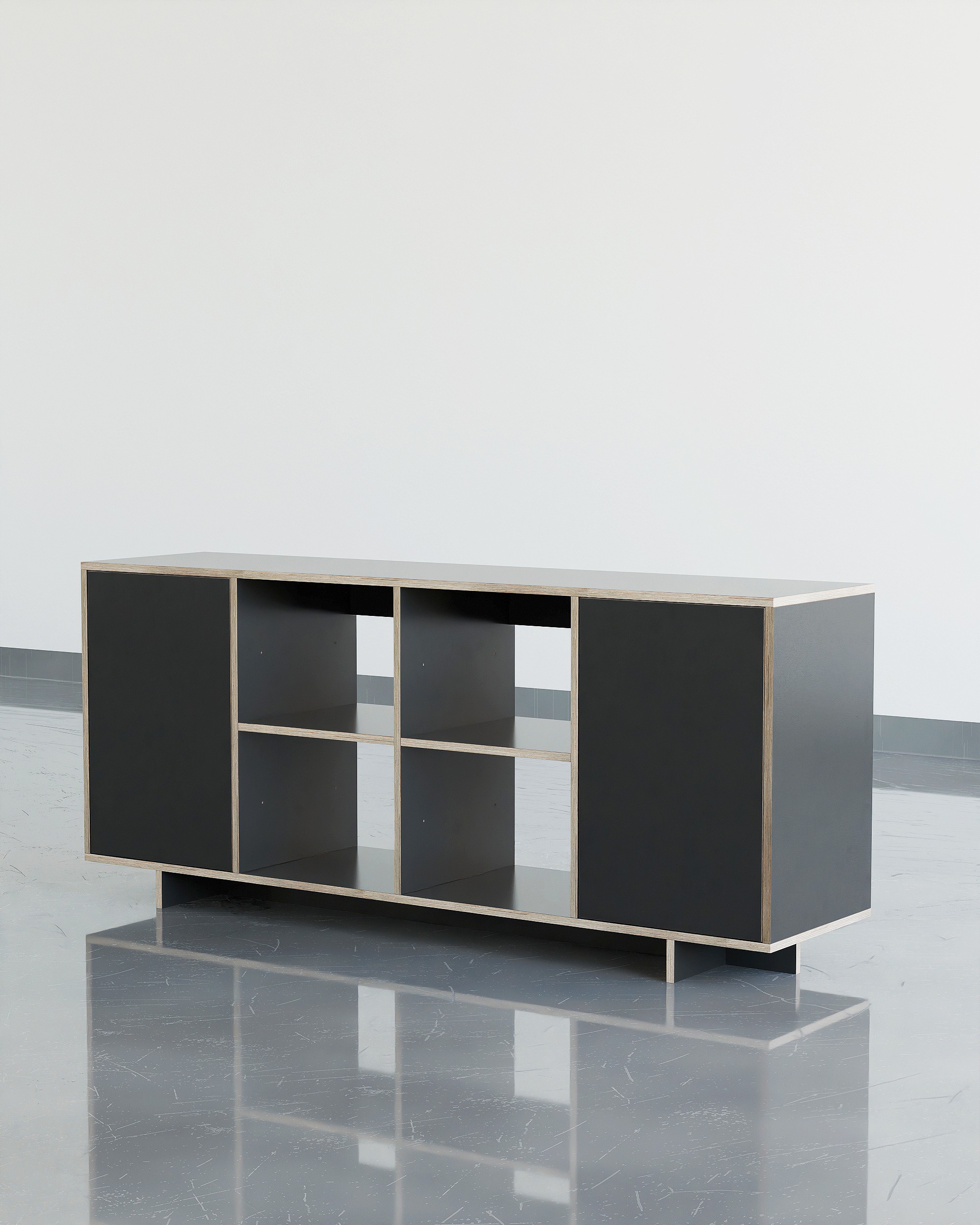 심플하고 미니멀한 디자인과 하단부 다리 디자인이 포인트인 사이드보드 타입의 캐비넷입니다. 공간에 중심을 잡아주기 좋은 크기와 디자인으로 중앙 책장칸 후면은 오픈된 형태로 (막힌 디자인으로 변경 가능) 서적은 물론 전자기기들을 수납하기 좋습니다. 푸시 도어가 설치된 좌, 우칸 내부는 높이 조절 선반을 활용하여 수납목적에 맞게 칸의 높이를 총 4가지로 조절 할 수 있으며 높이 조절 선반은 중앙 책장 칸에도 설치하여 사용 할 수 있습니다. 총 넓이 1600 깊이400의 길고 넓은 상판으로 다양한 활동 및 장식품, 턴테이블, 커피머신 등을 커버 할 수 있고 책상보다 조금 낮은 715mm의 높이로 간단한 작업 등이 가능합니다. 제품은 맞춤 제작 서비스를 통해 공간에 맞는 컬러, 사이즈, 칸 구성을 변경 할 수 있습니다.